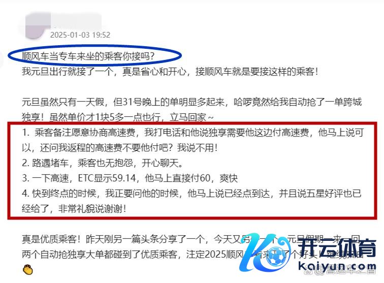 天然,不成奢求每一个乘客齐是这么的“轨范”,然则,不得不说的是,只消更多这么的乘客,以后的顺风车合乘才智变得愈加融合,愈加其乐融融。
