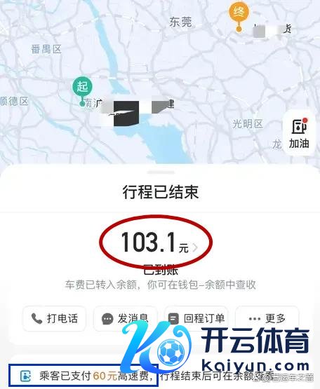 据司机先容,这是一笔在跨大除夜进行的,60多公里的跨城独享订单,得手车资为103元,单价大约是一块五一公里,说不上是太高,探究到那时交通拥挤的情况,司机的举座陈说只可说是差强东说念见地。